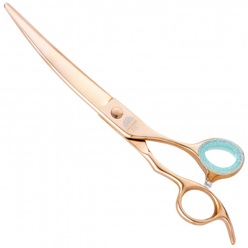 Kenchii Rose Offset Curved Scissors - nožnice na úpravu z ružového zlata, ohnuté, s mikrorezom - 8"