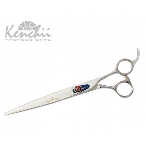 Špičkové rovné nožnice od Kenchii so skosenými čepeľami. Séria Five Star je najobľúbenejšia medzi pestovateľmi a chovateľmi z celého sveta. Vyrobené z japonskej nehrdzavejúcej uhlíkovej ocele s tvrdosťou 55-57 HR, s antikoróznou úpravou, vďaka čomu sú mimoriadne odolné a efektívne. Ručne brúsené čepele zo saténovej nehrdzavejúcej ocele zaručujú bezpečné strihanie akéhokoľvek druhu odevu. Ergonomický, odsadený tvar nožníc neunavuje zápästie a zaisťuje pohodlnú prácu aj po dlhšom používaní. Tento model nožníc nemá mikrobrúsku. Vybavený pevnou opierkou prstov, prítlačnou skrutkou, prídavným krúžkom a olivkou. Vytvorené profesionálmi pre profesionálov, ktorí požadujú najvyššiu kvalitu svojich nástrojov.