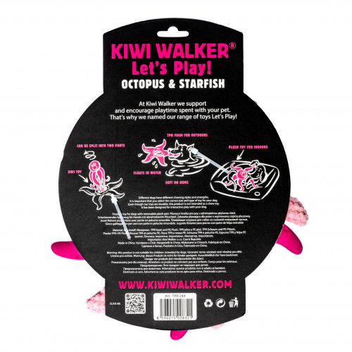 Kiwi Walker Chobotnica & Hviezdica 25 cm - hračka pre psa 2 v 1, plyšová chobotnica a plávajúca hviezdica - ružová