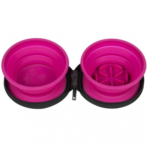 Kiwi Walker Double Travel Bowl With Slowfeeder 2x350ml - cestovná miska, spomaľujúca jedenie, pre psov a mačky, silikón - Fuchsia