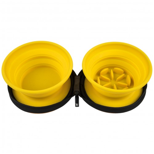 Kiwi Walker Double Travel Bowl With Slowfeeder 2x350ml - cestovná miska, spomaľujúca jedenie, pre psov a mačky, silikón - Orange