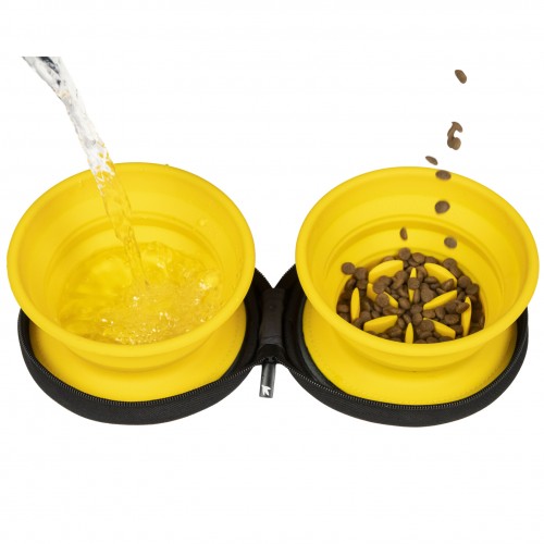 Ak vy a váš miláčik milujete cestovanie, táto jedinečná sada misiek bola vytvorená práve pre vás. Kiwi Walker Double Travel Bowl With Slowfeeder je jediný produkt na trhu, ktorý zaručí vášmu miláčikovi pohodlné a praktické jedlo počas cesty. Je určený pre psov a mačky. Skladá sa z dvoch silikónových misiek, ktoré sa veľmi jednoducho zostavujú. Okrem toho sa môžete rozhodnúť, aká hlboká bude miska, a to úplným alebo polovičným rozložením. Misky sú pripevnené na nylonovom púzdre pevným suchým zipsom, môžete ich vybrať alebo nie, všetko záleží na vás. Po zložení to celé pripomína obal na CD so zipsom. Jedna miska je aj miska, ktorá spomaľuje jedenie. Odporúča sa najmä pre domáce zvieratá, ktoré trpia tráviacimi ťažkosťami, plynatosťou alebo plynatosťou v dôsledku príliš rýchleho jedenia. Výrazne predlžuje čas strávený jedením jedla a predchádza problémom vyplývajúcim z hltavého prehĺtania sústa namiesto pomalého žuvania. U psov s nadváhou pomáha dosiahnuť pocit sýtosti po podaní menšej porcie, čo uľahčí zhadzovanie prebytočných kilogramov Sada misiek vďaka kompaktnému dizajnu nezaberie veľa miesta, zmestíte sa do nich v taške alebo batohu. Má tiež pútko, pomocou ktorého môžete obal zavesiť alebo pripevniť. S miskou Kiwi Walker nebude problém podávať jedlo uprostred lesa, na pláži alebo pri dlhej prechádzke. Misky je možné rýchlo a jednoducho opláchnuť pod tečúcou vodou alebo umyť v umývačke riadu. Produkt je dostupný v 4 sviežich farbách: zelená, modrá, oranžová a fuchsiová Kiwi Walker Double Travel Bowl: jediné svojho druhu silikónové cestovné misky, v puzdre pre psov a mačky na vodu, suché alebo mokré krmivo, jedna. misa je tiež spomaľovacia misa na jedlo s inovatívnou kompaktnou štruktúrou skladá sa ako harmonika zaručuje pohodlné jedenie počas cestovania ideálne riešenie na výstavy, dlhé prechádzky, výlety pripevnené k puzdru pomocou pevného suchého zipsu zaberá málo miesta v nylonovom puzdre, upevnené so zipsom, puzdro má pútko, môžete ho pripevniť alebo zavesiť misky je možné umývať ručne alebo v umývačke na 30°C dostupné v 4 živých farbách s takýmito miskami je jedlo uprostred lesa čisté potešenie Rozmery: priemer misky: 15cm kapacita: 2x350ml rozmery rozloženého obalu: 34cmx16cm priemer zloženého obalu: 16cm, výška: 4 ,5cm hmotnosť: 368g