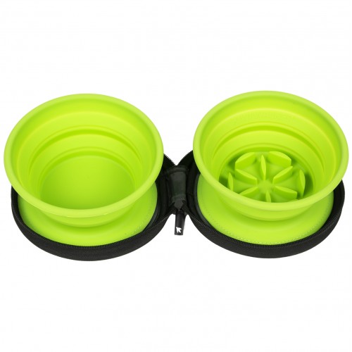 Kiwi Walker Double Travel Bowl With Slowfeeder 2x350ml - cestovná miska, spomaľujúca jedenie, pre psov a mačky, silikón - Zelená
