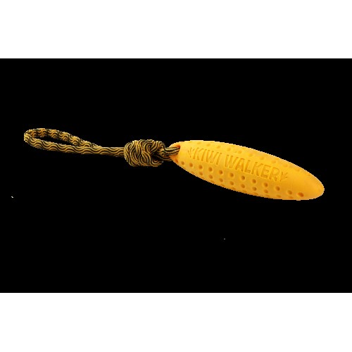 Nie je potrebné nikoho nabádať, aby túto hračku používal. Už samotný názov hovorí sám za seba: „Let's play“ – poďme sa baviť! Sme si istí, že Kiwi Walker Let's Play Zeppelin uspokojí každého milovníka bláznivej zábavy. Materiál, z ktorého je vyrobený tento vtipný aport v tvare guľky s farebným pleteným lanom, je hustá TPR pena. Je taká tvrdá a odolná, že ju zničí aj väčší maškrtník. Zároveň je veľmi pekný, až zamatový na dotyk. Ani keď je pokrytý slinami, nevykĺzne z ruky ošetrovateľa ani z tlamy zvieraťa. Početné razby a ich dizajn znamená, že aport pri hre jemne masíruje zuby a ďasná, čím pomáha udržiavať ich dobrý stav. Môžete si vybrať z dvoch veľkostí: mini a maxi Veľa možností, veľa vrtenia chvostom: Kiwi Walker Zeppelin si môžete vziať do parku a použiť ho ako aport, pekne sa vznáša vo vzduchu a padá ďaleko. Pri náraze o zem alebo prekážku sa nepravidelne odráža, čím napodobňuje správanie koristi v prírode. Ak má váš pes veľmi vyvinutý poľovnícky inštinkt, určite ho táto aktivita poteší. Jeho dizajn bude fungovať aj ako ťahák: chyťte hračku do ruky, napr. lano, nechajte psa chytiť loptičku ústami a začnite sa naťahovať. Je to skvelý spôsob, ako sa spolu zabávať a budovať porozumenie. Vezmite aport na pláž (dobrý je aj bazén v záhrade) a rýchlo uvidíte, aká zábavná môže byť plávajúca hračka! Výhody aportu Kiwi Walker Let's Play pre psov: vyrobený z odolnej, hustej TPR termoplastickej peny, možno ho použiť ako ťahák, pláva na vode a nepotápa sa, príjemný na dotyk, s početnými reliéfmi uľahčujúcimi uchopenie, v Živá, pútavá farba, ľahko sa udržiava v čistote Veľkosti: Mini: dĺžka 17 cm, dĺžka s povrazom 35,5 cm, hrúbka 42 mm, váha 160 g, hračka ideálna pre menšie psy Maxi: dĺžka 23 cm, dĺžka s povrazom 42 cm, hrúbka 42 mm, váha 160g, hračka ideálna pre stredné a veľké psy Poznámka: Pravdaže hračka je vyrobená z veľmi odolnej termoplastickej peny a je celkom odolná voči prehryznutiu, no určite sa nájde nejaký odvážny bojovník, ktorý ju zničí. Ak chcete, aby vám aport slúžil čo najdlhšie, nenechávajte svojho miláčika bez dozoru a nedovoľte mu ho používať ako hryzátko.