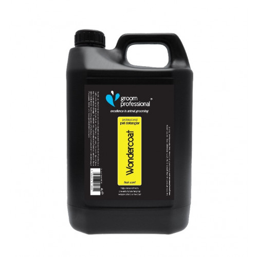 Groom Professional Wondercoat Detangling & Conditioning Spray je kondicionér, ktorý pomáha rozčesať zacuchanú srsť. Je vhodný pre dlhú aj stredne dlhú srsť. Môže sa aplikovať priamo na srsť alebo hrebeňom. Zanecháva sviežu vôňu. Výnimočne účinný a veľmi efektívny. Ideálny na každodenné čistenie srsti psov. Návod na použitie: Nastriekajte srsť pred kefovaním. V závislosti od typu srsti použite hrebeň alebo kefu. Môže sa použiť pred aj po kúpaní. Zloženie: voda, etylalkohol, dimetylsiloxán, aminoetylaminopropyl, silsesquioxán, hydroxyl-therm, hydrochlorid.