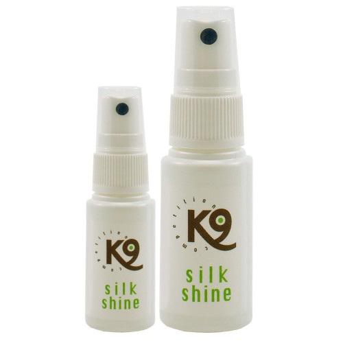 K9 Silk Shine, prípravok, ktorý leští srsť psov a mačiek. Vyhladzuje a dodáva srsti veľkolepý lesk. Zabraňuje zamotaniu srsti. Chráni pred statickou elektrinou a nekontrolovateľným krepovatením. Obohatený o pantenol, ktorý upokojuje suchú a podráždenú pokožku a redukuje šupinatenie. Vyživuje a posilňuje srsť, znižuje jej náchylnosť na poškodenie a lámavosť. K9 Silk Shine je veľmi účinný, stačí len pár kvapiek, aby srsť získala veľkolepý lesk a vzhľad. Vhodné pre všetky typy a farby srsti psov, mačiek a iných domácich zvierat. Je ideálny pre starostlivosť o dlhé vlasy. Na použitie doma, v chovateľskej stanici a v strihacom salóne: Stačí pár kvapiek. Aplikujte na srsť a vyčesajte Zloženie: Dimeticone, Cyclometicone, D-panthenol, Fragrance O značke: Kozmetika K9 Competition sa vyrába vo Švédsku z najlepších prírodných surovín dostupných na trhu. Produkty majú upokojujúci a upokojujúci účinok na citlivú pokožku a nedráždia. Zloženie kozmetiky je zostavené v dokonalej harmónii, aby dodávalo pokožke a srsti živiny, poskytovalo primeranú úroveň hydratácie a optimalizovalo kvalitu srsti. Produkty sa ľahko používajú, pomáhajú bojovať proti zamotaniu a šetria čas. Používaním kozmetiky K9 sa skracuje doba schnutia a srsť zostáva dlhodobo vo výbornom stave. Kozmetika K9 je vhodná pre všetky druhy zvierat, srsti, plemená a šteniatka.
