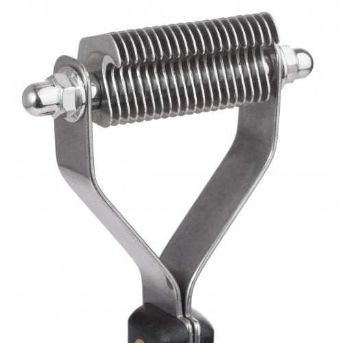 Háčikový zastrihávač pre psov a mačky, KW Smart Blades 20. Dvadsať malých háčikov vám umožní rýchlo a efektívne pozbierať uvoľnené, odumreté chlpy zo srsti a vyčesať prebytočnú podsadu bez strihania srsti. Tento typ zastrihávača je ideálny na strihanie drôtosrstých psov (napr. bradáč), krátkosrstých psov (napr. doberman, bígle), kefovanie podsady španielov a setrov a úpravu mačiek. Rukoväť pokrytá protišmykovými prvkami bezpečne padne do ruky a zaisťuje pohodlnú prácu. Plsť vhodná na profesionálne aj domáce použitie. Rukoväť z odolného plastu, hlavica a háčiky z nerezovej ocele. KW Smart Blades 20 háčikový zastrihávač: 20 malých háčikov na odstraňovanie voľnej srsti a zbieranie prebytočnej podsady na strihanie drôtosrstých psov na krátku srsť psov a mačiek na odbaľovanie španielov a stavačov na odvliekanie mačiek s dlhou a hustou srsťou jednoduché a pohodlné používanie s protišmykovou rukoväťou nezastriháva vlasy Spôsob použitia: Pred použitím zastrihávača vlasy prečešte, aby ste zabránili vytrhnutiu vlasov, keď sa jeden z háčikov zachytí. Strihajte srsť po malých častiach (najmä ak má váš maznáčik veľa podsady). Začnite od spodných častí tela a postupujte smerom nahor. Zdvihnite srsť, aby ste sa dostali k pokožke. Zastrihávač jemne pretiahnite cez srsť v smere rastu srsti Tip: Pravidelné zastrihávanie srsti znižuje množstvo vypadávajúcich a poletujúcich srsti, poskytuje pokožke dostatočné vetranie, znižuje riziko splstnatenia srsti, zlepšuje vzhľad vášho domáceho maznáčika.