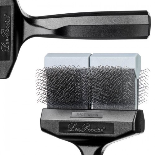 Originálna kefka Les Poochs, vyrobená v USA. Strieborný model s tvrdými ihlami s hladkým koncom, ktoré boli špeciálne leštené, aby sa znížilo riziko poranenia pokožky pri česaní. Nepostrádateľný na dokončenie účesu, ideálny na rozčesanie podsady, nadvihnutie a kučeravenie vlasov. Budete prekvapení, koľko vlasov dokážete rozčesať len niekoľkými ťahmi. Model tejto obojstrannej kefy je veľmi efektný a zároveň jemný, zanecháva srsť lesklú a dokonale vyčesanú. Strieborná kefa Les Poochs sa odporúča pre tieto plemená: Akita, Aljašský husky, Americký eskimák, Austrálsky ovčiak, Bearded kólia, Braird, Chow Chow, Nemecký ovčiak, Nemecký špic, Islandský ovčiak, Labradoodle (samozrejme, kučeravý), Malamut , staroanglický ovčiak, puli, border kólia hrubosrstá, kólia dlhosrstá, samojed, shetlandský ovčiak, shiba inu, sibírsky husky, border kólia hladká, hladká kólia, švédsky laponský pes, švédsky vallhund atď. Nepostrádateľné na vyčesávanie spleti a vyčesávanie mŕtve vlasy. Odporúča sa pre každodennú starostlivosť o plemená s hustou a dvojitou srsťou, pomáha pri sušení na krepatenie a nadvihnutie srsti. Táto všestranná kefa zaisťuje vysoký komfort práce a dlhé roky používania, perfektná pre každodenné použitie. Väčšia veľkosť (9 cm) je vhodná pre psov s hmotnosťou približne 10 kg Kefy Les Poochs sú po dlhšej neprítomnosti späť, teraz sú lepšie ako kedykoľvek predtým: nové nerezové ihly boli špeciálne leštené, aby nepoškodili kožu vylepšenú rukoväť. pre pevnejší úchop a zvýšenú odolnosť kefky, ohnuté ihly na koncoch ešte efektívnejšie vyčesávajú spleti, ergonomická rukoväť umožňuje pohodlné používanie pravákom aj ľavákom, originál americká výroba (Made in USA)