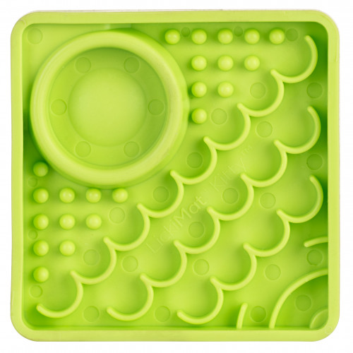 LickiMat Kitty - malá podložka, ktorá spomaľuje jedenie pre mačiatka a dospelé mačky, so vstavanou miskou - zelená