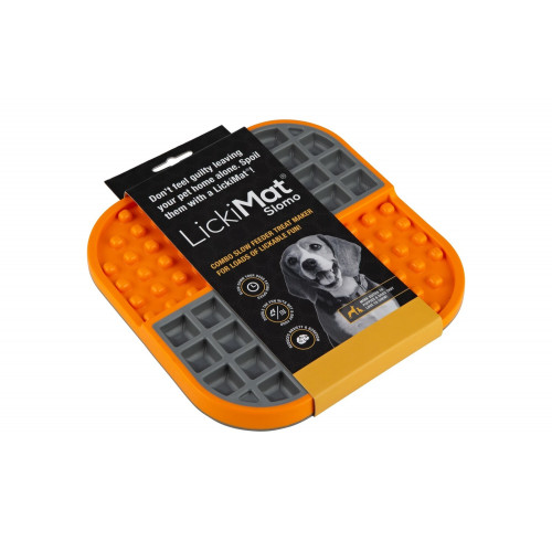 Lízacia plastová podložka Lickimat Slomo, alebo inak slow-feed miska, je rozdelená do štyroch sektorov o rozmeroch 10 x 10 cm. Dva protiľahlé sektory majú vždy rovnaký reliéf. Použité sú dva typy reliéfu – vystúpený a vydutý. Každý sektor môžete naplniť iným druhom pochúťky. Je odporúčaná veterinármi a odborníkmi na správanie psov naprieč celým svetom. LickiMat podložky sú vytvorené s cieľom obohatiť welfare psov a tým zlepšiť ich sústredenie a celkový zdravotný stav. LickiMat tiež zaistí zábavu a zmierni stres u psa, ktorý má sklony k separačnej úzkosti, keď odchádzate z domu. Pomôže tiež v stresujúcich situáciách - napríklad počas búrky alebo dlhého čakania na veterinárne ošetrenie. Rovnako tak bude užitočná pri pobyte psa v klietke. Alebo ju môžete použiť ako dlhotrvajúcu odmenu po pretekoch alebo náročnom výkone. Svoju neoceniteľnú prácu tiež odvedie v prípade psa po operácii, ktorému tak nemôžete dopriať bežnú zábavu vonku. To všetko je pre psa spojené s príjemným zážitkom, kedy si vylizuje mäkkú pochúťku zo všetkých záhybov podložky. Jemné lízanie uvoľňuje endorfíny, ktoré pôsobia upokojujúcim dojmom. Nespornou výhodou je aj to, že psovi umožníte dlhší príjemný zážitok s jedlom, napriek tomu, že použijete pomerne malé množstvo jedla. A navyše k tomu všetkému lízanie podporuje tvorbu slín, čo napomáha čisteniu zubov, ďasien a jazyka.