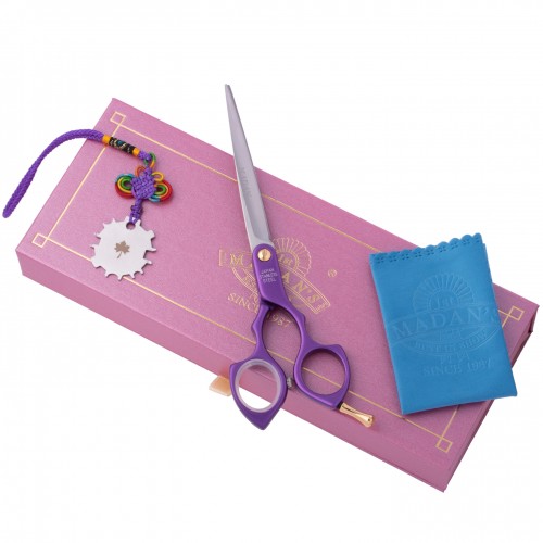 Madan Straight Pet Grooming Scissors 6,5" - profesionálne, ultraľahké rovné nožnice z japonskej nerezovej ocele, hliníková rukoväť - fialová