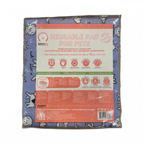 Absorpčná podložka Misoko&Co, určená pre všetkých domácich miláčikov, je vhodná na použitie pri výučbe robiť prírodné záležitosti na správnom mieste alebo pre inkontinentných seniorov. Podložka je opakovane použiteľná. Vhodné pre domáce použitie, výstavy, psie búdy. Podložka výborne absorbuje tekutiny a zanecháva povrch suchý. Táto podložka je ekonomické riešenie, pretože ju budete môcť použiť viackrát. Navyše sa ľahko udržuje - možno prať aj na 90 °C. Možno prať viac ako 300x a sušiť v sušičke pri nízkych teplotách alebo zavesiť. Tieto opakovane použiteľné podložky sú nielen ekonomickým, ale aj ekologickým riešením. Ich používaním budete chrániť životné prostredie a prispejete k udržateľnejšiemu životu. - Štyri vrstvy pre spoľahlivú ochranu - 4 vrstvy sú navrhnuté tak, aby lepšie absorbovali vlhkosť. Spodná vrstva je navyše protišmyková, trvanlivá, odolná proti roztrhnutiu a výborne pohlcuje nepríjemné pachy. 1. vrstva - 100% polyester. 2. vrstva: 95% polyester, 5% viskóza. 3. vrstva – polyuretánová (PU) laminácia. 4. vrstva - 100% polyester.