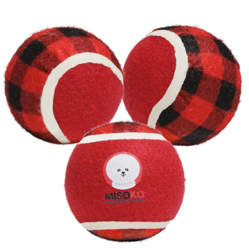 Hračka pre psov MISOKO, tenisové loptičky, 3 ks, 7,5 cm, tmavo červené, kocky
