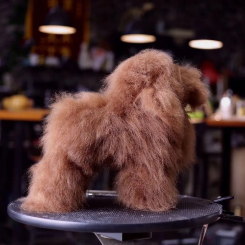 Pán Vlasy Jiang Teddy Model Dog Full Body Hair v hnedej farbe, vysokokvalitný doplnok vytvorený pre použitie s figurínou Mr. Modelový pes Jiang Teddy. Ide o dokonalú pomôcku pre každého strihača bez ohľadu na to, či je v umení strihania a strihania psov len začiatočník alebo profesionál s dlhoročnými skúsenosťami. Kabát bol vytvorený za účelom osvojenia si techniky strihania nožnicami, modelovania a kreatívnej úpravy najmä v ázijskom štýle, tzv. ázijský štýl. Nepostrádateľný pre všetky typy tréningov, tréningov, výstav a súťaží. Pán Modely a Vlasy Jiang sú známe, oceňované a široko používané po celom svete Mr. Jiang je navrhnutý tak, aby chránil čepeľ nožníc napodobňovaním prirodzenej srsti vášho psa. Vyrobené z kvalitného Hi-pile materiálu, dĺžka vlasu 11-12,5 cm. Môžete si ho ľubovoľne upravovať, napr. do podoby medvedíka, a farbiť pomocou fúkačov alebo airbrush. Môžete tiež použiť ozdobné prvky na doplnenie vašej tvorby, napríklad mašle, sponky, stuhy atď. Kľúčové vlastnosti Mr. Jiang Teddy Full Body Hair: vysokokvalitné vlasy na nácvik techniky strihania nožnicami na zdokonaľovanie techník modelovania a kreatívnej úpravy na učenie sa strihov v ázijskom/kórejskom štýle možno použiť ako ukážkový model napr , výstavy a súťaže chráni čepeľ nožníc, imituje prirodzenú srsť psa, dá sa ľubovoľne upravovať a farbiť, sedí na model Mr. Jiang Teddy Model Dog z materiálu Hi-pile s dĺžkou srsti 11-12,5 cm navrhnutý skúseným strihačom - Mr. Jiang odporúčaný pre začiatočníkov a profesionálnych úpravcov farba: hnedá Spôsob použitia: Po rozbalení nasaďte vlasy na figurínu. Pomocou špajle urobte do srsti otvory pre oči a nos. Potom cez ne prevlečte oči a nos a zaskrutkujte do figuríny Poznámka: Cena je za vlasy, figurínu je potrebné dokúpiť. Prvé fotografie prezentované v galérii predstavujú príklady možného stylingu. Nasledujúce fotografie zobrazujú skutočný produkt pred česaním a stylingom.
