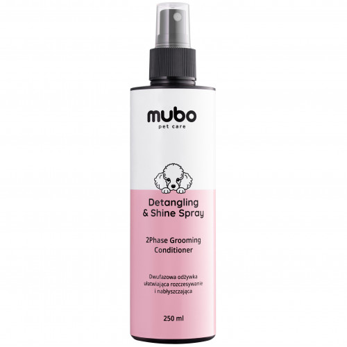 Mubo Detangling & Shine Spray 250ml - dvojfázový kondicionér, ktorý uľahčuje rozčesávanie a dodáva lesk, pre psy a mačky