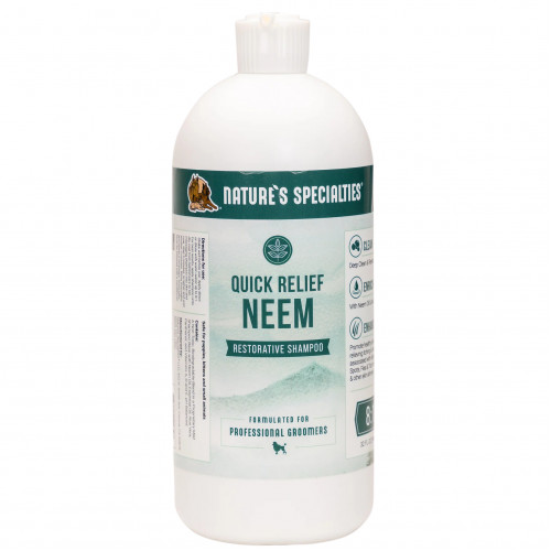 Šampón Nature's Specialties Quick Relief Neem je profesionálny šampón pre psy a mačky. Rýchlo a účinne poskytuje úľavu od kožných ochorení, ako sú infekcie, plesňové infekcie, atopia a ekzémy. Upokojuje podráždenie spôsobené uštipnutím hmyzom. Znižuje svrbenie, začervenanie a olupovanie. Jemný čistiaci základ dôkladne čistí srsť zvieraťa bez poškodenia prirodzeného hydrolipidického filmu. Pridanie aloe vera a pantenolu hydratuje, upokojuje a urýchľuje regeneráciu poškodenej pokožky a chráni ju pred škodlivými vonkajšími faktormi. Vitamíny A, D a E, ako aj esenciálne oleje, vyživujú a ošetrujú srsť zvieraťa. Bezpečný pre mačiatka, šteniatka a malé domáce zvieratá. Koncentrát 1:8. Vlastnosti šampónu Nature's Specialties Quick Relief: urýchľuje hojenie kožných problémov, redukuje začervenanie, svrbenie a olupovanie srsti, s čistiacimi zložkami šetrnými k pokožke a srsti, s neemovým olejom, s upokojujúcim pantenolom a aloe vera, s pridanými vitamínmi A, D a E, s esenciálnymi olejmi, zachováva prirodzenú ochrannú bariéru, s vyváženým pH pre psy, mačky a menšie domáce zvieratá, bezpečný pre šteniatka a mačiatka, na báze netoxických, biologicky odbúrateľných zložiek, tento produkt je určený na profesionálne použitie. Návod na použitie: V závislosti od vašich potrieb používajte neriedený alebo zmiešajte šampón s teplou vodou (maximálne riedenie je 1:8). Pre dosiahnutie najlepších výsledkov naneste šampón na suchú srsť, začnite od hlavy až po chvost. Nechajte pôsobiť 5 minút, potom masírujte, kým sa neobjaví pena. Počkajte ďalších 5 minút a potom dôkladne opláchnite. Nakoniec použite kondicionér Nature's Specialties Aloe Re-moisturize.