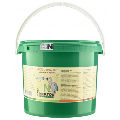 NEKTON-Baby-Bird je vo vode rozpustné kompletné krmivo pre ručný odchov mláďat vtákov. Kombinácia ľahko stráviteľných nutrientov s rastlinnými zložkami zaisťuje zdravý vývoj obehového systému, kĺbov a orgánov. Na posilnenie imunitného systému boli použité iba vysoko kvalitné prírodné ingrediencie s prídavkom mikronutrientov, podobné prirodzenej potrave. Prebiotiká a probiotiká zaisťujú zdravý rast mikroflóry vo voleti a črevách a podporujú trávenie. Nie je potrebné ponúkať žiadne iné krmivo.