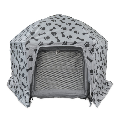 Pety Cover Plus for Playpen ideálny pre vonkajšie použitie, obal pre Pety Playpen pre psov. V prípade potreby je možné každú stranu v hornej časti otvoriť a zaviazať. Poťah Plus chráni vášho psa pred UV žiarením, dažďom a vetrom (je vodeodolný a vetruvzdorný) - zo všetkých strán. Je tiež ideálnym riešením, keď chcete psa upokojiť, nechať ho odpočívať a trochu ho izolovať od okolia - uzavreté bočné steny psa menej rozptyľujú ďalšími podnetmi. Výhody ohrádky Pety Cover Plus pre ohrádku: určená pre ohrádku Pety, chráni pred slnkom, vetrom a dažďom, izoluje psa od podnetov, vyrobená z materiálu odolného proti UV žiareniu, početné suché zipsy a gumy zaisťujú, že návlek zostane na svojom mieste aj vo vetre, návlek je vyrobený z hydrofóbnej tkaniny, preto je najlepšie ho čistiť handričkou, obal môžete zohriať vodou a jemným materiálom, polyester:0, farba UPF:3 thracit s čiernymi labkami a kosťami, veľkosť - vyberte variant. Veľkosti: malé - vhodné pre stany Pety Playpen Small, váha 0,67 kg