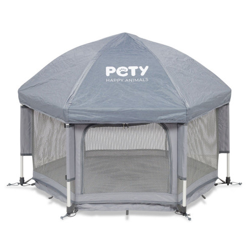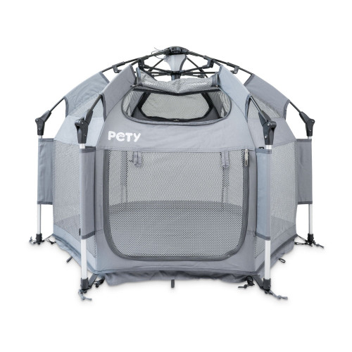 Pety Playpen Small je ľahký a mobilný stan pre malého psa. Dá sa použiť aj ako všestranná zastrešená ohrádka pre šteniatka. Dá sa postaviť a zložiť za pár sekúnd So skladacím stanom pre psa Peta môžete byť vy a váš miláčik stále v pohybe! Ľahká, prenosná ohrada pre zvieratá s hmotnosťou len 2,8 kg je ideálna na výstavy, súťaže, školenia, cestovanie, kempovanie a mnoho ďalších príležitostí. Vďaka nízkej hmotnosti ho ľahko prenesiete kamkoľvek budete chcieť. Stan bol navrhnutý a patentovaný vo Švajčiarsku, čo zaručuje vysokú kvalitu spracovania a inovatívne riešenia Pri kúpe ohrádky Pety Playpen Small dostanete všetko, čo potrebujete: skladací a ľahký antracitový stan pre domácich miláčikov, priliehavý baldachýn (kryt len na vrchnú časť) chrániaci pred slnkom (UV ochrana) a dažďu (so samostatným vakom), dodatočnú vodotesnú podložku k podložke stanu (s praktickou prepravnou taškou) na zem. Výhody stanu Pety Playpen Small pre psov: rýchle a jednoduché zostavenieVďaka pokročilej technológii je možné stan postaviť a zložiť v priebehu niekoľkých sekúnd, čo šetrí váš čas. Bezpečnostná spona navyše poskytuje maximálnu ochranu vášho domáceho maznáčika. na použitie v interiéri aj exteriéri Stan Pety bol navrhnutý s ohľadom na všestrannosť – funguje skvele v interiéri aj exteriéri. Odnímateľná a vodeodolná podlážka na zips sa ľahko čistí, vďaka čomu je stan mimoriadne praktickým riešením. Pes môže ležať priamo na zemi, na látkovej podlahe alebo na podložke. maximálna bezpečnosť a pohodlie Vďaka sieťovaným stenám poskytuje stan vynikajúce vetranie a plnú viditeľnosť vášho domáceho maznáčika, čo vám dáva možnosť neustáleho očného kontaktu. pre malých psov, mačky, šteniatka. Ohrádka Pety Small rozmery: priemer: 110cm, výška: 80cm rozmer podložky (podlaha): 97x97x2cm po zložení: 62x16x16cm váha: 2,8kg (bez podložky) Materiál: látka je vodeodolný polyester s UPF 30+ Poznámka: pred prvým použitím si prečítajte návod. Nevkladajte prsty medzi horné a spodné prvky rámu, aby ste predišli privretiu. Nenechávajte zviera bez dozoru - doma aj na cestách.