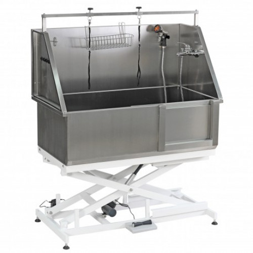 Dvere umiestnené vpravo sa posúvajú do strán a zatvárajú sa vďaka magnetu a uľahčujú prístup zvieratám v nízkej polohe. Protišmyková podložka prináša pohodlie zvieraťu a uľahčuje ošetrovateľovi upratovanie pri zbere chlpov. Filtračný kôš drží chlpy a neblokuje prúdenie vody. Umiestňuje sa priamo do odpadu. Vaňa má na všetkých vonkajších hranách dokončovacie tesnenie, vďaka čomu je estetickejšia a zabraňuje poraneniu na okrajoch nerezového plechu. Súčasťou vane je vodná batéria. Vaňa je dodávaná v nezmontovanom stave. Inštaláciu a pripojenie musí vykonať kvalifikovaný odborník Údržba: Nerezová oceľ môže podliehať lokálnej korózii vedúcej k jamkovej korózii. Tieto nečistoty (kovový prach) sa môžu náhodne nachádzať na vani a vo vlhkom prostredí tvoriť hrdzu. Na čistenie a impregnáciu použite mäkkú neabrazívnu tkaninu a sprej QUICK INOX s označením C0047 Maximálna nosnosť vane: 150 kg ROZMERY: Šírka: 127 cm Celková výška: od 109 do 175 cm Hĺbka: 67 cm Rozmery dverí: 40 cm