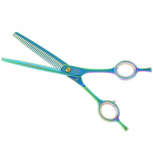 Obojstranné stenčovacie prúžky značky P&W Scissors (od Nicka Kontosa), model Hulk. Určené pre hrubšiu srsť pre dosiahnutie prirodzeného efektu. Každý zub má precíznu mikrobrúsku, ktorá zabraňuje skĺznutiu vlasu pri strihaní. Jedna strana stenčovacej kefy má krátke zuby, ktoré prenikajú hlbšie do srsti a poskytujú ešte lepšie výsledky. Ztenčovacie lišty vyrobené z kvalitnej ocele, potiahnuté opálovo zeleným povlakom. Ergonomická rukoväť, obojstranné zabudované háčiky a silikónové krúžky zaručujú vysoký komfort používania. Balené v pohodlnom obale s logom výrobcu. POZOR! Všetky produkty P&W Scissors sú dodávané iba v rámci Poľska! Farby prsteňov sa môžu líšiť od vyobrazených na fotografii a posielajú sa náhodne.