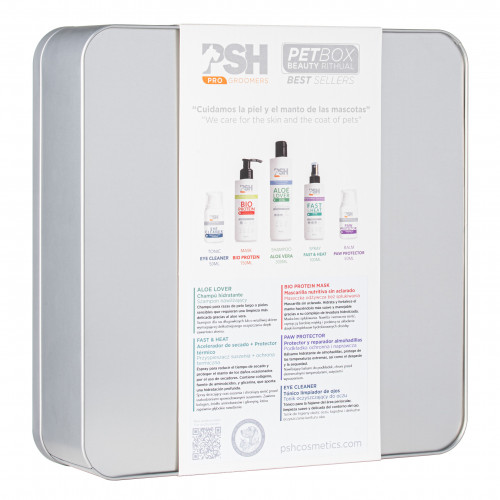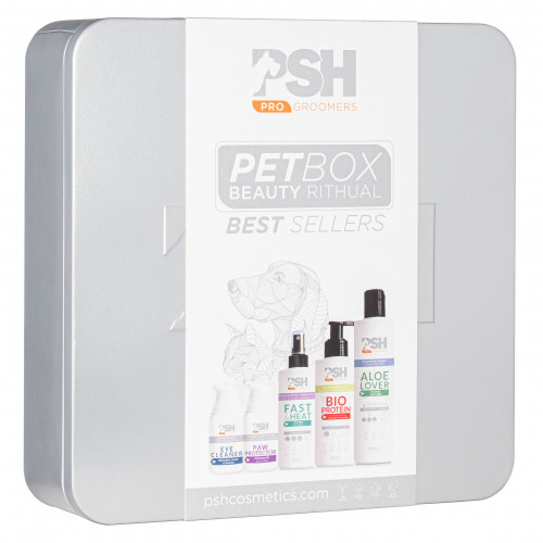 PSH Pet Box Beauty Ritual Best Sellers Pro - sada piatich profesionálnych kozmetických prípravkov pre psov a mačky v kovovej plechovke
