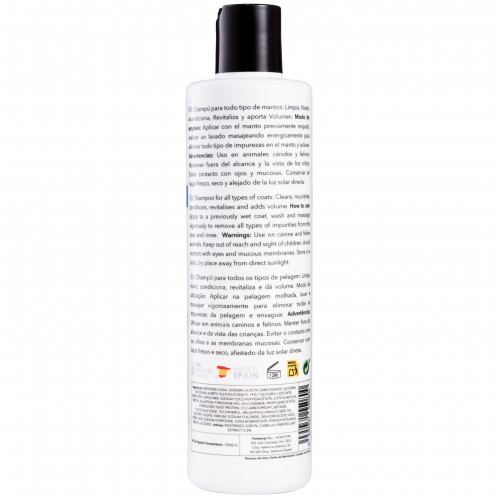 Šampón pre psov a mačky, PSH Total Care 5v1 Shampoo, určený na domáce použitie. Produkt určený na starostlivosť o všetky typy a farby srsti. Univerzálna kozmetika, ktorá súčasne čistí, vyživuje, stará sa, posilňuje a dodáva objem. Obohatené o zložky ako pantenol a extrakt zo zeleného čaju. Pantenol hydratuje, znižuje suchosť pokožky a srsti a posilňuje ich. Extrakt zo zeleného čaju vyživuje srsť a dodáva jej lesk. Vitamíny skupiny B obsiahnuté v šampóne (biotín, niacínamid a pyridoxín hydrochlorid) posilňujú srsť, znižujú náchylnosť na vypadávanie srsti a vyživujú vlasové folikuly. Jemná vôňa a absencia parabénov, silikónov a katónu (dráždivá zmes konzervačných látok) robia zo šampónu PSH Total Care ideálnu voľbu pre citlivé zvieratá, vhodný na časté používanie. Jeho ekologické, vegánske zloženie, založené na princípoch „zelenej chémie“, je skvelou voľbou pre všetkých, ktorým záleží na blahu našej planéty. Výrobný proces je založený na princípe predchádzania znečisteniu, používania ľahko obnoviteľných surovín a podpory reakcií prebiehajúcich pri izbovej teplote s cieľom znížiť spotrebu energie. Výhody šampónu PSH Total Care: čistí vyživuje a posilňuje stará sa dodáva objem hydratuje pokožku a srsť chráni pred škodlivými vonkajšími faktormi upokojuje podráždenú pokožku, urýchľuje jej obnovu dodáva krásny lesk nenarúša prirodzenú ochrannú vrstvu pokožky a srsti pre všetky typy a farby srsti pre citlivé psy a mačky s pantenolom a extraktom zo zeleného čaju s jemnou vôňou bez pantenolu s hypoalergénnou vôňou vegánske ekologické zloženie Návod na použitie: Naneste šampón na predtým mokrú srsť, rovnomerne vmasírujte a potom dôkladne opláchnite. Bezpečnostné informácie: Použitie u psov a mačiek. Uchovávajte mimo dosahu a dohľadu detí. Zabráňte kontaktu s očami a sliznicami. Skladujte na chladnom a suchom mieste mimo dosahu priameho slnečného žiarenia. POZNÁMKA! Všetky produkty PSH zasielame iba v rámci Poľska.