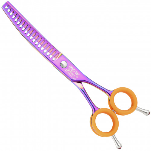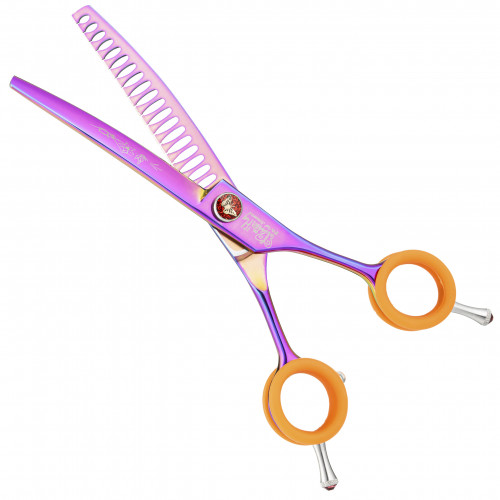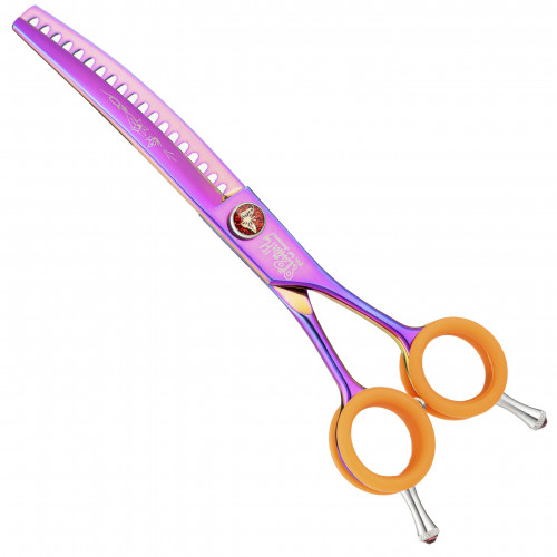 P&W ButterFly Curved Chunker Scissors 6,5". Skvelá pomôcka pre dokončovacie práce vykonávané ostrými nožnicami alebo strojčekom. Ideálna voľba pre hustú, kučeravú srsť - pre rýchle a rovnomerné tvarovanie kučier - ako aj pre psov s dvojitou srsťou. Zakrivený tvar čepele uľahčuje získanie požadovaného tvaru účesu u plemien, ktoré vyžadujú pevné polokruhové tvary s opačnou ružovou povrchovou úpravou. stenčovacie nožnice sú vybavené 19 širokými zúbkami s mikrobrúsením, ktoré bráni vykĺznutiu vlasov pri úprave, čím uľahčuje prácu s nepoddajnou srsťou, poskytuje väčšiu kontrolu nad strihom a minimalizuje riziko nerovností alebo poškodenia srsti Pohodlná, symetrická rukoväť s optimálnym rozložením prítlaku na ruky a s vynikajúcim ovládaním na ruke ružové zirkóny, mäkké, silikónové krúžky a gumená zarážka pre maximálny komfort upravovateľa. Nožnice P&W ButterFly Curved Chunker sú perfektným riešením pre ľudí, ktorí hľadajú kvalitné vybavenie za prijateľnú cenu. Vďaka svojim neobvyklým farbám a krásnemu, opalizujúcemu prevedeniu vyzerajú zoštíhlené nohavice mimoriadne pôsobivo. Ďalšie kúzlo dodáva ozdobná prítlačná skrutka so symbolom motýľa. Budú dobre fungovať v každom kozmetickom salóne. Balené v originálnom obale s logom výrobcu. Vlastnosti nožníc P&W ButterFly Curved Chunker: veľkosť 6,5" pevná konštrukcia na dokončenie účesu po strihaní nožnicami alebo strojčekom ideálne pre husté, kučeravé vlasy zakrivená čepeľ uľahčuje kreslenie línie pozdĺž oblúka 19 širokých zubov (chunker) majú mikrobrúsky zvládajú nepoddajnú stranu srsti bezpečné pre vlasy, nepoškodzujú krúžky na prstoch dvojitá silikónová štruktúra absorbér na rukoväti účinný, opalescentný povlak zhodný s puzdrom s logom výrobcu UPOZORNENIE Všetky produkty P&W Scissors zasielame iba v rámci Poľska.