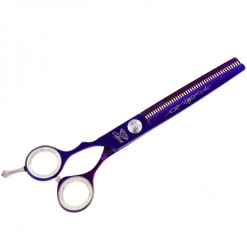 Profesionálne jednostranné žehličky značky P&W Scissors (Nick Kontos), model Carat. Určené pre ľavákov. Majú veľmi ostrú reznú hranu a zuby so zárezmi, ktoré zabraňujú skĺznutiu vlasov pri strihaní. Perfektné na dotvorenie účesu väčšiny plemien, nenahraditeľné pre každého strihača. Ergonomická Semi-Offset rukoväť, otočný háčik (zdobený zirkónom) a gumené krúžky zaručujú vysoký komfort práce. Model s reverznou čepeľou pre tzv európsky štýl. Vybavený pohodlnou skrutkou na nastavenie tlaku. Balené v pohodlnom obale s logom výrobcu. POZOR! Všetky produkty P&W Scissors sú dodávané iba v rámci Poľska! Farby prsteňov sa môžu líšiť od vyobrazených na fotografii a posielajú sa náhodne.