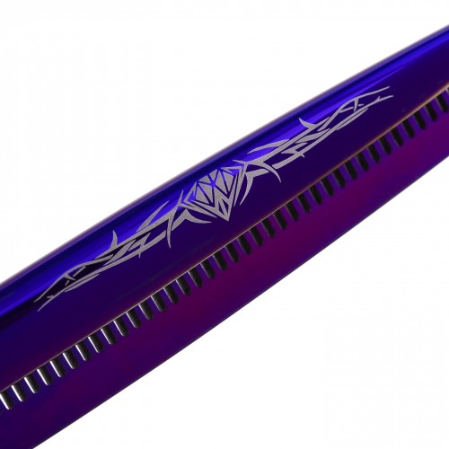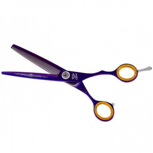 Profesionálne jednostranné žehličky značky P&W Scissors (Nick Kontos), model Carat. Majú veľmi ostrú reznú hranu a zuby so zárezmi, ktoré zabraňujú skĺznutiu vlasov pri strihaní. Perfektné na dotvorenie účesu väčšiny plemien, nenahraditeľné pre každého strihača. Ergonomická Semi-Offset rukoväť, otočný háčik (zdobený zirkónom) a gumené krúžky zaručujú vysoký komfort práce. Model s reverznou čepeľou pre tzv európsky štýl. Vybavený pohodlnou skrutkou na nastavenie tlaku. Balené v pohodlnom obale s logom výrobcu. POZNÁMKA Všetky produkty P&W Scissors sa dodávajú iba v rámci Poľska.