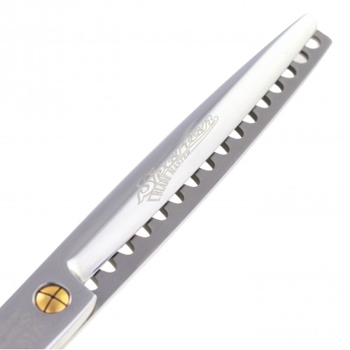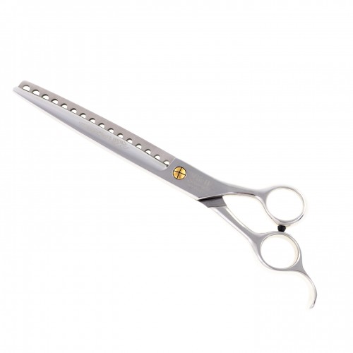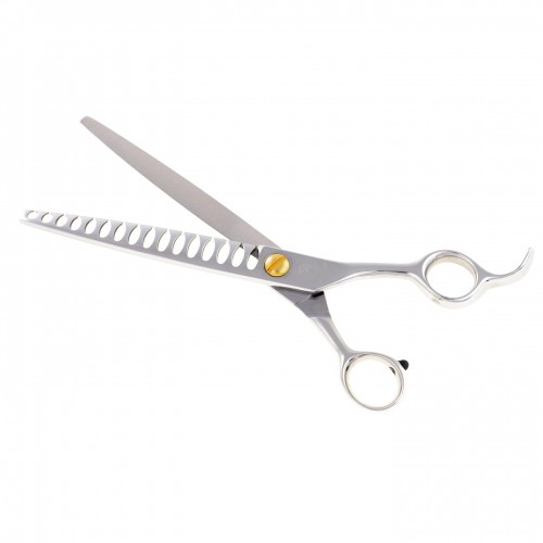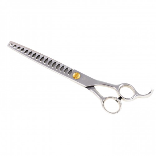 Profesionálne jednostranné, ženské, chunkers značky P&W Scissors (od Nicka Kontosa), model Spartan. Ručne vyrobené z ocele najvyššej kvality. Majú veľmi ostrú reznú hranu a široké zuby so zárezmi, ktoré zabraňujú skĺznutiu vlasov pri strihaní. Ergonomická rukoväť a zabudovaný hák zaručujú vysoký pracovný komfort. Ideálne pre rýchlejšie preriedenie na 55%, pre bradáčov a iné plemená s hustou srsťou. Nepostrádateľný počas výstav a súťaží, odporúčaný pre každého profesionála. Balené v pohodlnom obale s logom výrobcu. Dámska verzia má menší priemer otvorov na prsty Výhody žehličiek P&W Spartan: ručne vyrábané z najkvalitnejšej ocele, majú široké zuby so zárezmi, ideálne pre rýchle riedenie, ergonomická rukoväť a zabudovaný hák zaručujú vysoký komfort pri práci. práca, sada obsahuje pohodlné puzdro s logom výrobcu Poznámka: Všetky produkty značky P&W Nožnice sú zasielané iba v rámci Poľska! Farby prsteňov sa môžu líšiť od vyobrazených na fotografii a posielajú sa náhodne.