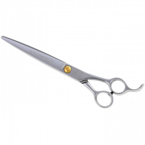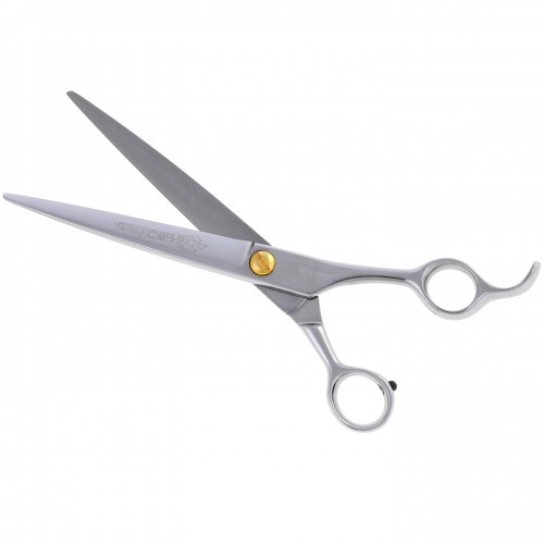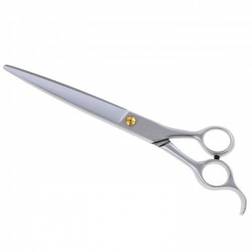 Profesionálne rovné nožnice na ošetrovanie, značka P&W Scissors (od Nicka Kontosa), model Spartan. Ideálne na strihanie plemien ako sú: Kerry Blue, Pudel, Čierny ruský teriér, Newfoundland atď. Vyrobené ručne, majú veľmi ostrú reznú hranu, ktorá zaisťuje hladký rez. Široké čepele, ergonomická rukoväť a zabudovaný hák zaručujú vysoký komfort práce. Sú ideálne na dokončenie účesu. Odporúčané pre profesionálov. Balené v pohodlnom obale s logom výrobcu. POZOR! Všetky produkty P&W Scissors sú dodávané iba v rámci Poľska! Farby prsteňov sa môžu líšiť od vyobrazených na fotografii a posielajú sa náhodne. Dostupné aj v pánskej verzii s väčšími otvormi na prsty: