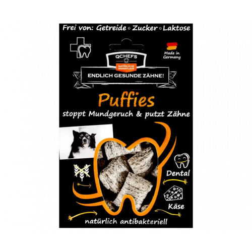 Ľahká desiata s dokonalým chrumkaním! Vzdušná a ľahká textúra robí Puffies obzvlášť obľúbenými u stredných a veľkých plemien psov. A prinúti dokonale rozhrýzť tieto krekry aj tie najväčšie hltače.