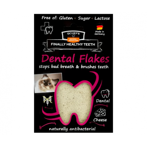 Najúčinnejšia a najintenzívnejšia dentálna starostlivosť QCHEFS! Vločky sú z mnohých jemných častíc a pri olizovaní sa rozprestrie po celej ústnej dutine. Mačka ich hneď neprehltne. To poskytuje optimálnu podporu starostlivosti o zuby. Antibakteriálne peptidy pri olizovaní najprv pôsobia na jazyk, kde sa nachádza väčšina baktérií, ich počet sa redukuje a ústna flóra je vyvážená.