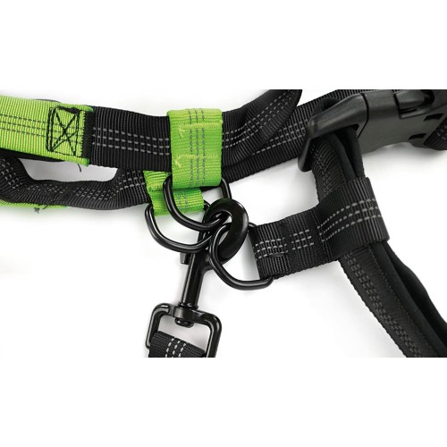 Record Jogging je set, ktorý obsahuje bedrový pás na beh so psom a vodítko s dvojitým tlmičom a k nemu pripevnené dve rukoväte. Ideálne na beh, prechádzky a turistiku s malými alebo veľkými psami. Ideálne na dogtrekking alebo canicross. Vodítko je vybavené dvoma pohodlnými, neoprénom potiahnutými rukoväťami, vďaka ktorým môžeme zviera prilákať alebo držať blízko seba, bez toho, aby sme šmýkali ruky na povraze vodítka. Dva zabudované tlmiče chránia psovoda pred ťahaním a ťahaním psa (najmä veľké plemená), čo má veľký význam pre udržanie rovnováhy, plynulý pohyb a ochranu pred zraneniami psa aj jeho psovoda. Pre pohodlie pri používaní nastaviteľný bedrový pás podšitý neoprénom. Vďaka tejto súprave je športovanie so psom čistým pôžitkom. Pre zvýšenie viditeľnosti a bezpečnosti pri pohybe v tme má vodítko a bedrový pás po celej dĺžke reflexné prešívanie Vlastnosti: Súprava je ideálna na beh, chôdzu a turistiku silný, dvojitý tlmič, ktorý chráni pred ťahaním a ťahaním psa, zaisťuje rovnováhu a plynulý pohyb. Tlmiče chránia psa aj jeho majiteľa pred zranením zadarmo Vodítko s pohodlnými, neoprénovými držadlami na pritiahnutie alebo pridržanie psa. uchytí aj tie najtvrdohlavejšie a veľké zvieratá Vodítko je možné použiť samostatne, bez ohľadu na bedrový pás Vodítko je navyše vybavené dvoma kovovými očkami umožňujúcimi skrátiť vodítko, napr vašich rúk Nastaviteľný bedrový pás bedrový pás potiahnutý neoprénom pre zvýšenie pohodlia pri používaní Súprava z odolného materiálu odolného voči poveternostným vplyvom Rozmery vodítka: Dĺžka: 215 cm (natiahne sa na 270 cm) Šírka: 2,5 cm Farba: čierna so zelenými prvkami Rozmery bedrového pásu: Nastaviteľná dĺžka: od 65 do 110 cm Šírka: 3 cm Farba: čierna