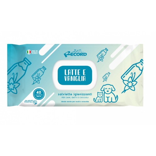Record Salviette Latte E Vaniglia 40 ks - univerzálne obrúsky na čistenie srsti, očí, uší psov a mačiek, mlieko vanilkové