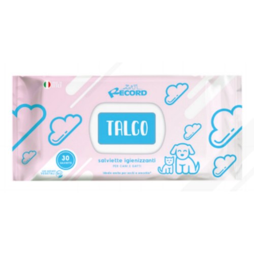 Record Salviette Talco - univerzálne obrúsky na čistenie srsti, očí, uší psov a mačiek, s púdrovou vôňou - 80 ks.