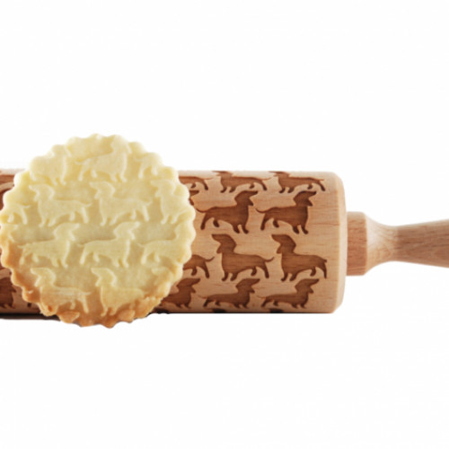Valček z bukového dreva s laserovým gravírovaním so psím motívom. Valček má optimálnu hĺbku gravírovania pre najlepšie výsledky razenia do cesta a dokonca aj hliny a je potiahnutý olejom schváleným pre priamy styk s potravinami, ktorý chráni drevo a uľahčuje nanášanie vzorov (cesto sa tak ľahko nelepí na povrch valčeka). Valček je schválený pre styk s potravinami. Rozmery: dĺžka 43 cm/16,9" s držadlami, priemer 6 cm/2,4", gravírovaná plocha 25 cm/9,8". Drevo, z ktorého je valček vyrobený, je od certifikovaných dodávateľov z EÚ. To znamená, že valček je vyrobený. zameriava na podporu udržateľného lesného hospodárstva.Drevo je prírodný materiál a preto sa môžu na jeho povrchu objaviť rôzne nedokonalosti, ako je zmena farby, farebné rozdiely, nerovnosti. a kontrastu vzoru zobrazeného na fotografiách kvôli prirodzeným rozdielom v jednotlivých častiach dreva použitého na výrobu valčekov.)