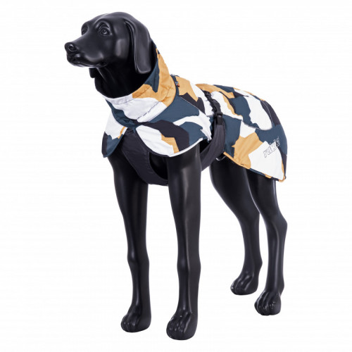 Kabát pre domácich miláčikov v štýlovom maskáčovom prevedení. Kabát udržuje psa v teple a suchu v každom počasí.