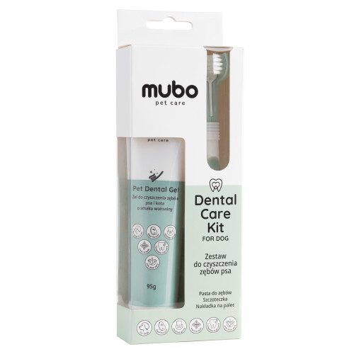 Sada na starostlivosť o zuby Mubo - sada na čistenie psích zubov, zubná pasta, kefka a krytka na prsty