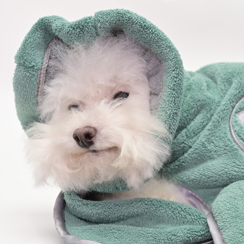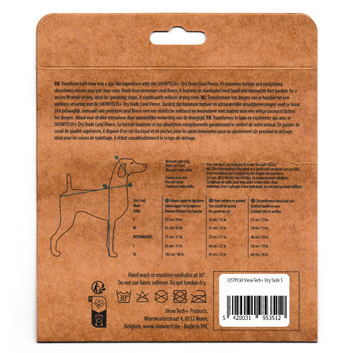 Fantastický a praktický uterák/župan Show Tech Dry Dude Desert Sage, vyrobený z hrubej a rýchloschnúcej látky. Účinne suší srsť a absorbuje oveľa viac vody ako tradičné uteráky. Vyrobený z vysoko kvalitného koralového fleecu v zelenej farbe. Uterák má elastickú časť okolo krku a otvory na labky pre bezpečné a pohodlné nosenie. Ideálny pre každého domáceho maznáčika po kúpeli, zabraňuje striekaniu vody pri trasení psa po kúpeli. Župan obopína celé telo psa, zabraňuje strate tepla a poskytuje jemné a bezpečné sušenie. Má vyšívanú dekoratívnu aplikáciu s logom výrobcu a lemovaním, ktoré spevňuje okraje a chráni ich pred strapkaním. Vlastnosti uteráka Show Tech Dry Dude Desert Sage: veľmi savý vyrobený z koralového fleecu elastický otvor okolo krku má otvory na labky zabraňuje striekaniu vody po kúpeli udržiava teplo lemovanie okolo okrajov chráni ich pred zničením farba: zelená Rozmery: Veľkosť S: od krku po chvost 32 cm, výška 31 cm Veľkosť M: od krku po chvost 44 cm, výška 36 cm Veľkosť L: od krku po chvost 60 cm, výška 56 cm