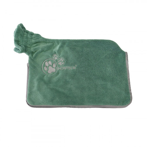 Fantastický a praktický uterák/župan Show Tech Dry Dude Desert Sage, vyrobený z hrubej a rýchloschnúcej látky. Účinne suší srsť a absorbuje oveľa viac vody ako tradičné uteráky. Vyrobený z vysoko kvalitného koralového fleecu v zelenej farbe. Uterák má elastickú časť okolo krku a otvory na labky pre bezpečné a pohodlné nosenie. Ideálny pre každého domáceho maznáčika po kúpeli, zabraňuje striekaniu vody pri trasení psa po kúpeli. Župan obopína celé telo psa, zabraňuje strate tepla a poskytuje jemné a bezpečné sušenie. Má vyšívanú dekoratívnu aplikáciu s logom výrobcu a lemovaním, ktoré spevňuje okraje a chráni ich pred strapkaním. Vlastnosti uteráka Show Tech Dry Dude Desert Sage: veľmi savý vyrobený z koralového fleecu elastický otvor okolo krku má otvory na labky zabraňuje striekaniu vody po kúpeli udržiava teplo lemovanie okolo okrajov chráni ich pred zničením farba: zelená Rozmery: Veľkosť S: od krku po chvost 32 cm, výška 31 cm Veľkosť M: od krku po chvost 44 cm, výška 36 cm Veľkosť L: od krku po chvost 60 cm, výška 56 cm