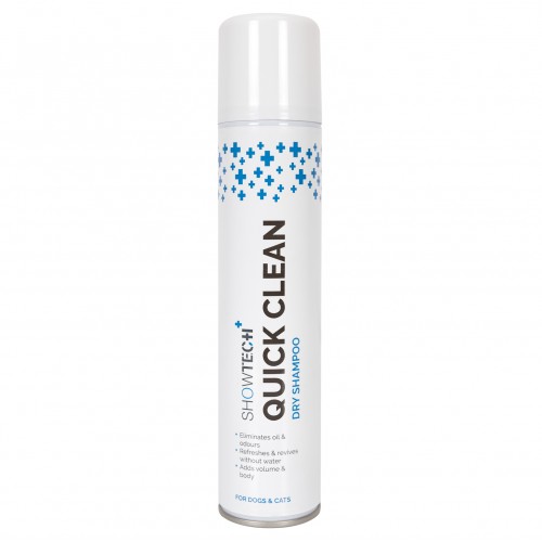 Show Tech+ Dry Shampoo je prípravok vytvorený špeciálne na obnovenie čistej srsti vášho domáceho maznáčika v situáciách, keď ho nemôžeme okúpať pod tečúcou vodou. Transparentný, suchý šampón v spreji je určený pre všetky typy srsti psov a mačiek. Vďaka unikátnej receptúre má vysokú schopnosť absorbovať nečistoty, odstraňuje nečistoty a prebytočný maz zo srsti vášho domáceho maznáčika. Poskytuje čistotu a sviežosť bez použitia vody. Navyše jemne dodáva objem a nadvihuje vlasy pri korienkoch, čím dodáva vlasom vhodnú textúru. Ideálne na osvieženie kabáta medzi kúpaním. Po dlhej ceste na výstavu, tesne pred krúžkom alebo jednoducho, keď sa váš miláčik vráti z prechádzky špinavý a vy nemáte čas sa okúpať. Šampón vlasy vyhladzuje, posilňuje, dodáva lesk a krásnu ovocnú vôňu. Šampón Show Tech Dry Shampoo bol obohatený o ázijský ryžový škrob známy svojou vysokou savosťou a čistiacimi a ošetrujúcimi vlastnosťami, ako aj o chlorid cetrimonium, ktorý eliminuje statickú elektrinu vo vlasoch Výhody suchého šampónu Show Tech Pro Dry Shampoo: pre psov a mačky , čistí, vyhladzuje a vyživuje srsť, dodáva lesk je transparentná, nezanecháva nežiaduce stopy dodáva srsti vhodnú textúru potrebnú, keď chceme rýchlo vyčistiť srsť domáceho maznáčika a nemáme možnosť sa okúpať, ideálne pri cestovaní, pred výstavou, po prechádzke pre domácich miláčikov, ktorí nemajú radi kúpanie určené pre všetky typy srsti dodáva objem a nadvihujú vlasové korienky obohatené o ázijský ryžový škrob a cetrimoniumchlorid Spôsob použitia: Používajte na suché vlasy. Nastriekajte zo vzdialenosti 20-30 cm na srsť a prípravok dobre rozotrite po celej ploche srsti psa. Končekmi prstov jemne vmasírujte šampón do srsti až ku korienkom vlasov. Potom srsť dobre prečešte, aby sa produkt distribuoval. Nakoniec upravte srsť vášho domáceho maznáčika podľa potreby Zloženie: Bután, Isobután, Propán, Alcohol denat., Škrob Oryza Sativa (ryža), Cetrimonium chlorid, Parfum, Alfa-Isomethylionone, Benzylsalicylát, Linalool. Chráňte pred slnečným žiarením a nevystavujte teplotám vyšším ako 50ºC.