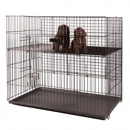 Klietka Show Tech Puppy Play Pen Medium je vyrobená s maximálnou starostlivosťou pre šteniatka, menšie psy a seniorov. Od ostatných podobných produktov sa odlišuje dvojitým dnom. Jedno je vyrobené zo syntetického materiálu a je výškovo nastaviteľné a podobne ako boky klietky má lamelovú konštrukciu. To je veľmi praktické, keď váš pes potrebuje vyprázdniť sa. Všetko padá na dno, čo zaisťuje väčšiu hygienu a čisté labky a srsť. Tento dizajn umožňuje rýchlejšie a jednoduchšie čistenie klietky. Tieto klietky sú ideálne na výstavy alebo súťaže, kde je čistá a upravená srsť nevyhnutná. Klietka je povrchovo upravená v elegantnej matnej čiernej farbe, pozinkovaná pre ochranu pred koróziou. Je vybavená hornými a bočnými dvierkami so zamykacím systémom pre zvýšenú bezpečnosť domáceho maznáčika. Skladá sa naplocho pre pohodlné cestovanie a skladovanie. Show Tech Puppy Play Pen Medium: 92x92x81cm. Má dvojité dno pre jednoduché čistenie srsti. Pozinkované pre odolnosť voči korózii. Má bočné a horné dvierka. Skladá sa naplocho. Show Tech Puppy Play Pen Medium: 92x92x81cm.