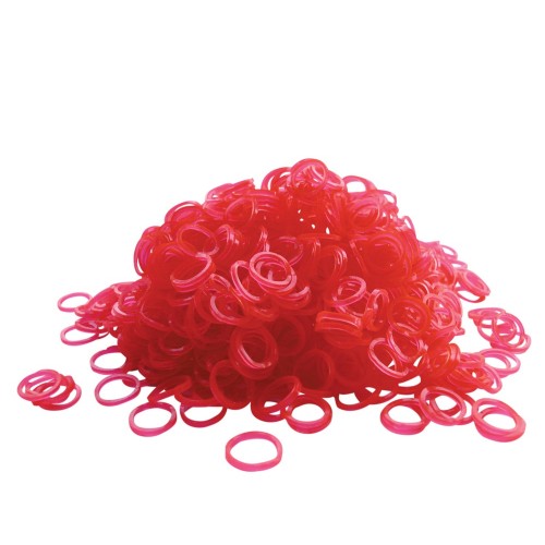Neónovo ružové latexové gumičky, priemer 0,8 cm. Hrúbka 1,5 mm. Nevyhnutné príslušenstvo pre mnohých chovateľov. 1000 ks v balení.