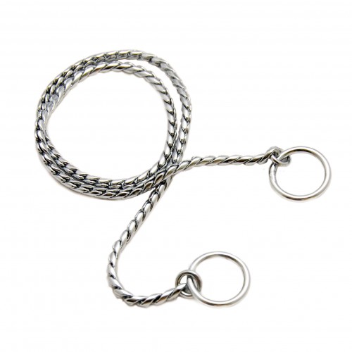 Elegantná výstavná retiazka hadieho typu z kvalitného lesklého kovu striebornej farby je navrhnutá tak, aby psovi nespôsobovala nepohodlie. chlpaté psy Perfektné na fotenie, súťaže, pózovanie na výstavách a tréningoch Retiazka dodá eleganciu a štýl každému zvieratku a jeho majiteľovi plemeno psa Dĺžku retiazky vypočítame spolu so začiatočnými a koncovými krúžkami na hlave psa čítajte, mali by ste pridať približne: 1-2 cm v prípade malých plemien, 2-3 cm v prípade stredných plemien, 2-4 cm pre veľké plemená Súčet miery plus prídavok udáva celkovú dĺžku reťaz, ktorá je potrebná. Tabuľka veľkostí Celková dĺžka retiazky Šírka 35cm 2,5mm 40cm 2,5mm 45cm 3mm 50cm 3mm 55cm 3mm 60cm 4mm 65cm 4mm 70cm 5mm