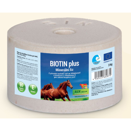 Minerálny soľný liz s biotínom Biotin plus dopĺňa ideálne dennú kŕmnu dávku optimálnym mixom soli, stopových prvkov a biotínu.