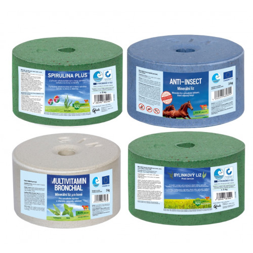 Cenovo zvýhodnené balenie 4 bylinných minerálnych lizov, ktoré ocení každý kôň.