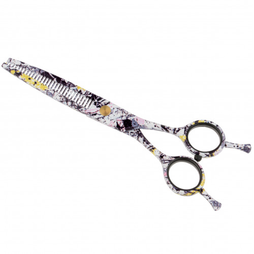 Special One Pollock Backcomb 6" je moderný hrebeň na česanie psej a mačacej srsti, ktorý sa vyznačuje predovšetkým netradičným tvarom - vyzerá ako tradičné riediace nožnice. Má dve tupé "čepele", z toho jednu zúbkovanú. Jemný, hladko ukončený hrebeň zuby nepoškodzujú kožu zvieraťa, sú optimálne umiestnené, ľahko sa dostanú medzi chlpy, neťahajú ich a nepoškodzujú ich štruktúru, zaisťujú rýchle a bezpečné rozčesávanie srsti a sú veľmi užitočné aj pri úprave vrchných uzlov, napr Shih Tzus alebo pom poms in Poodles Styling s takýmto nástrojom poskytuje profesionálne výsledky za kratší čas ako s tradičnými hrebeňmi na chrbát od značky Special One bol navrhnutý tak, aby sa dal ľahko a pohodlne používať, takže je ideálny pre začiatočníkov a odborníci Malé rozmery, úžasná ľahkosť a ergonomický dizajn dávajú pocit plnej kontroly nad náradím a robia prácu s ním veľmi príjemnou a efektívnou. Rukoväť hrebeňa má dve symetrické oká, vnútri lemované gumenými krúžkami. Na vonkajšej strane sú zase odnímateľné opierky prstov, ktoré pomáhajú udržiavať správnu polohu rúk pri práci a odľahčujú tak zápästie. Hrebeň je vybavený vonkajšou nastavovacou skrutkou, ktorá umožňuje meniť napnutie "čepelí", čo ovplyvňuje efekt backcombing. Skrutka navyše nevyžaduje použitie žiadnych nástrojov, takže jej polohu môžete kedykoľvek počas procedúry ľubovoľne nastaviť. Gumový nárazník umiestnený na rukoväti tlmí zvuk narážajúcich očiek a zabraňuje prípadnému poškodeniu materiálu. Special One Pollock Backcomb je ručne vyrobený a každý kus je dodávaný s certifikátom pravosti. Pevný materiál, z ktorého je vyrobený, je odolný voči vlhkosti, neláme sa a neohýba. Ďalším poznávacím znakom tohto modelu je jeho abstraktný dizajn, inšpirovaný dielami amerického maliara. Náradie je zabalené v krabici od výrobcu, nájdete v ňom aj kožené puzdro, olej na údržbu a koženú handričku, ktorá vám pomôže udržať hrebeň dlhodobo vo výbornom stave Vlastnosti hrebeňa "Special One Pollock Backcomb": za rozčesávanie veľkosť vlasov: 6" počet zubov : 30 dobre drží pramene vlasov, rýchlo rozčesáva súčasne väčšie množstvo vlasov, veľmi ľahký, ergonomický dizajn, symetrická rukoväť s gumenými krúžkami a opierkami prstov, skrutka na nastavenie napätia vlasov "čepele", gumený nárazník na rukoväti, ručná výroba, má certifikát pravosti, odolný proti vlhkosti, neláme sa a neohýba abstraktný dizajn zabalený v krabičke s púzdrom, olejčekom na údržbu a koženou handričkou Produkty Special One sa dodávajú iba v rámci Poľska.