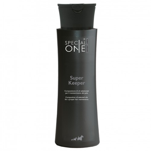 Special One Super Keeper je profesionálny a jedinečný kozmetický prípravok kombinujúci oleje, polysacharidy a ďalšie cenné látky, vybraný tak, aby udržal srsť psa v najlepšej kondícii. Je určený pre všetky druhy srsti. Jeho jedinečná štruktúra obaľuje vlasy, jemne ich hydratuje a chráni pred poveternostnými vplyvmi a vysušovaním. Prípravok tiež uľahčuje rozčesávanie a zabraňuje zamotávaniu. Olejové zloženie prípravku regeneruje vyčerpané vlasy, hydratuje a chráni ich, dodáva im lesk a pružnosť už od prvého použitia. Aktívne zložky obsiahnuté v Super Keeper okrem hĺbkovej hydratácie stimulujú vlasové folikuly, čo podporuje rast vlasov a znižuje ich vypadávanie. Ide o profesionálnu kozmetiku odporúčanú na použitie v kozmetických salónoch Aktívne zložky: glycerín: regeneruje poškodené, tenké, lámavé a suché vlasy. chráni vlasy pred škodlivými účinkami vonkajších faktorov; vďaka jeho pôsobeniu živiny prenikajú do vlasov fruktóza: dodáva vlasom ľahkosť a lesk, dokonale hydratuje vlasy a zabraňuje štiepeniu končekov hydrolyzovaný kolagén: posilňuje vlasy, zlepšuje elasticitu pokožky, jeho primeraná hladina eliminuje vypadávanie vlasov, zabraňuje dehydratácii vlasov, redukuje vlasy lámavosť med: vyživuje a obnovuje vlasy, dodáva lesk, hebkosť, hydratuje, urýchľuje rast vlasov kyselina hyalurónová: obnovuje poškodené vlasové štruktúry, vypĺňa medzery vo vlasovom korienku, regeneruje, posilňuje, zvlhčuje a urýchľuje rast vlasov Dva spôsoby použitia: Zriediť 15 ml Super Keeper s 1 l teplej vody. Zmiešajte a pomocou sprejovej fľaše nastriekajte celý povrch srsti vášho psa a dôkladne vmasírujte. Nechajte pôsobiť 10-15 minút a potom aplikujte masku Special One Bio Energy Plus Produkt môžete tiež ihneď zmiešať s maskou Bio Energy Plus (15 ml Super Keeper + 100 ml Bio Energy Plus + 900 ml vody) a aplikovať. suchého, špinavého psa pomocou špongie a nechajte asi 15 minút pôsobiť, bez oplachovania pokračujte v kúpaní